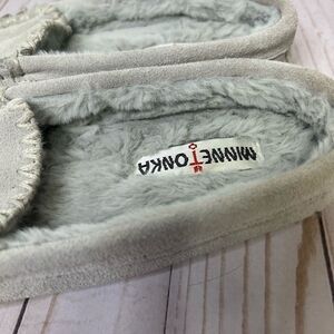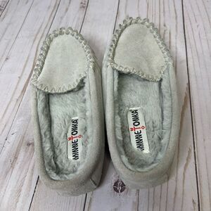 Minnetonka Gray Suede Leather Mocassin Slippers