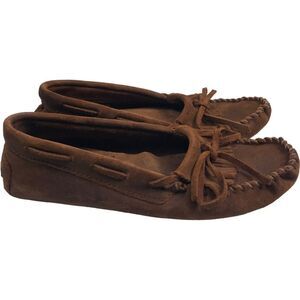 Minnetonka Kilty Brown Suede Leather Moccasins Shoes
