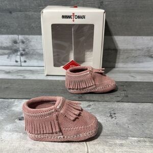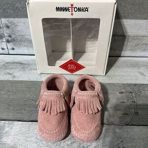 Minnetonka Mini-Tonka Style Pink Suede Moccasins Size 1 (3-6m)