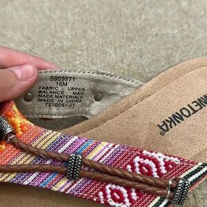 Minnetonka Mocassin Silverthorne 360 Sandals. Discover an even cushier version of Minnetonka's bestselling sandal silhouette in the Silverthorne 360, part of their signature 360 Degree Comfort collection. These comfortable women's sandals wrap your feet in all-over pillowy softness, with cushiony memory foam insoles and microfiber foam lining. A wide range of color and print options showcase braided details and silver-tone accents. With a new ultra-light EVA outsole, the Silverthorne 360 will have you dancing with joy.
