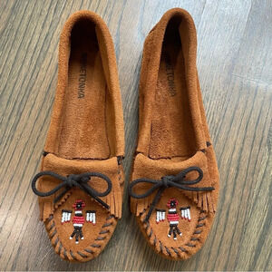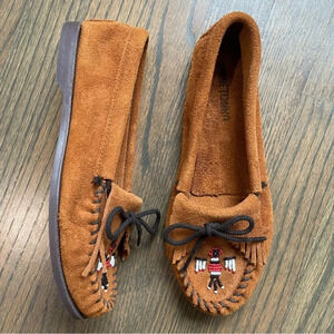 Minnetonka Moccasins 173 Thunderbird Boat Sole Beaded Suede Leather