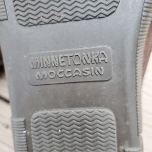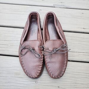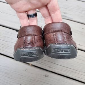 Minnetonka Moccasins Brown Moosehide Leather Classic Moc Toe Tie Front Moccasins