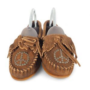Brand: Minnetonka "Peace" Suede Slip-on Moccasins
