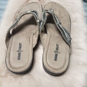 Minnetonka Silverthorne Leather Flip Flops size 11 great condition, see pictures for more details