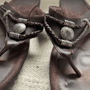 Minnetonka Silverthorne Prism Flip Flops, Brown Leather