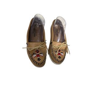 Minnetonka Tan Leather Beaded Moccasins