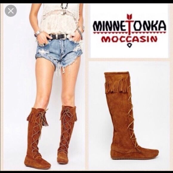 Minnetonka Vintage Fringe Tall Lace Boots Suede 10