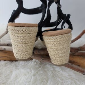 great condition black suede fringe and braided sandal espadrilles wedges.