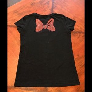 Very cute fitted girls top. Disney original. There is a small green dot on the left sleeve, visible in photo and a tiny white spec on the back of shirt. I have this listed as a bundle with another Minnie shirt as well. This GUC because of what was mentioned. The other Minnie shirt was worn once.