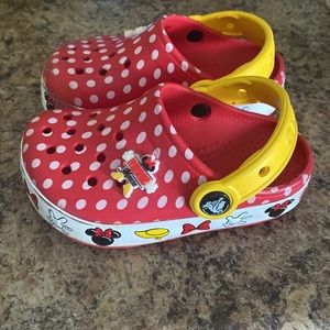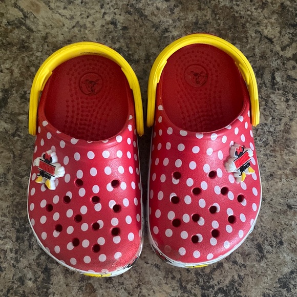 Minnie Crocs toddler size 8. One lights up one does not. Some signs of wear. See pictures