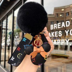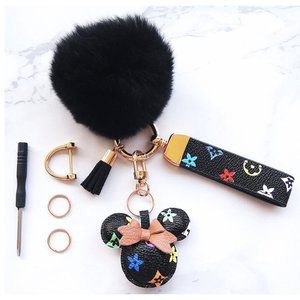 Minnie Keychain Leather Luxury, with Pom Pom Color Black