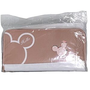 Minnie Mickey Mouse Wristlet Clutch Convertible Long Wallet Disney Theme Pink
