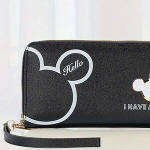 Minnie Mickey Mouse Wristlet Clutch Convertible Long Wallet White Black