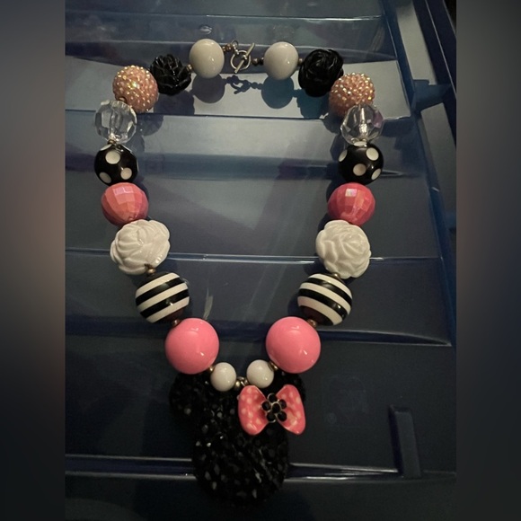 Handmade Minnie Mouse Necklace 18 inches long. The beads are about 1/2 inch each. Bold and chunky! Pink White and Black!!! I made this to sell its very cute!! Has a nice heavy duty toggle clasp!