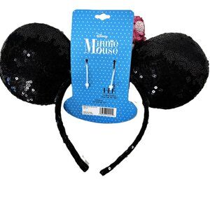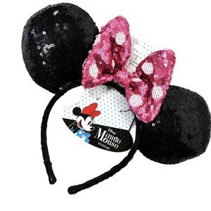 Minnie Mouse Blk Sequin Ears with Pink Bowtie NWT