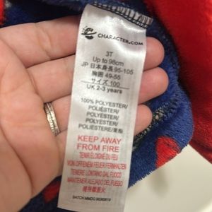 In red and blue, this bathrobe features an all-over motif of Minnie amidst her iconic bows and dots. Featuring a polka-dot lined hood that showcases her signature ears and bow and complete with two front pockets and tie closure. Excellent condition.
