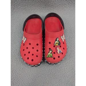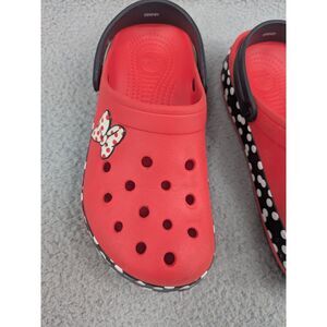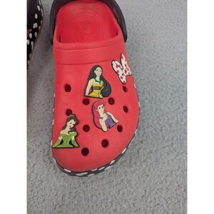 Minnie Mouse Disney Crocs Red Black White Women's size 8 Princess Jibbitz