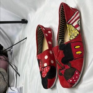 Fun, hand painted women’s shoes featuring Disney’s Mickey and Minnie mouse designs with a Disney’s favorite snacks theme. Women’s size 8. Perfect for your next trip to the park!
