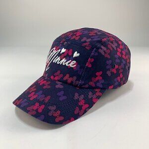 Item Name: Minnie Mouse Disney All Over Logo 5 Panel Adjustable Hat, Navy Blue/Pink