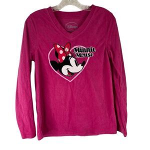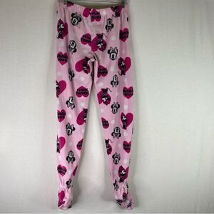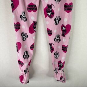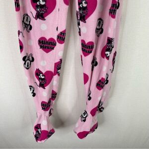 Minnie Mouse Disney Pajamas Women’s Pink Black 2 Piece Fleece Footed Pants Shirt M