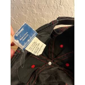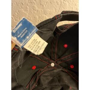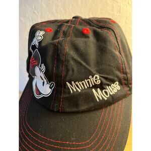 Add a touch of Disney magic to your outfit with this adorable Minnie Mouse baseball cap! Featuring a classic black design with a vibrant red thread brim and sparkling bling accents, this hat is perfect for any Disney fan. The adjustable strap ensures a comfortable fit for all-day wear. In excellent condition, it's ready to add some fun and flair to your wardrobe. Don't miss out on this charming accessory!