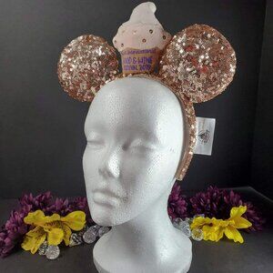 Disney Minnie Mouse Ears Rose Gold Sequins Epcot Wine Food Festival 2019 Cupcake