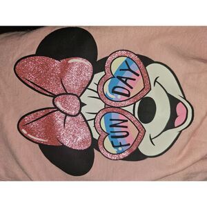 Pink Tee: Minnie with glittery heart sunglasses that say “FUN DAY”