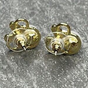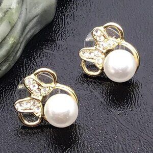 Minnie Mouse Gold Tone Faux Pearl Center Rhinestone Bow Earrings