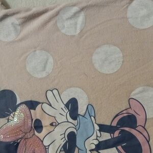 Pre-owned but in Fair Condition with subtle fade to the vinyl design (pictured) and a small mark at the very bottom of the shirt (pictured). The Minnie Mouse Graphic is still adorable and there plenty of life still left for casual use and relaxation time whole sporting the iconic Disney favorite. Size: S (6/6X)
