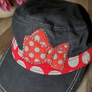 Minnie Mouse Hat Disney Parks Cap Cadet Red Polka Dot Bow Black Cotton Strapback