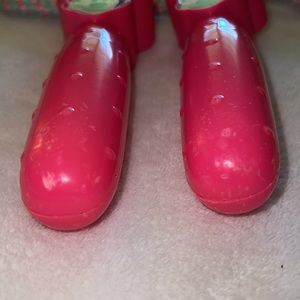 Minnie Mouse Jump Rope, some of the edge of one of the Minnie stickers have imperfections, the other one is better, both handles have scuff marks. I tried to capture them in the pictures.