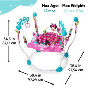 Disney Baby MINNIE MOUSE PeekABoo Baby Activity Center Jumper with 8 Toys, Lights & Sounds, 360-Degree Seat, 6-12 Months (Pink/Blue)