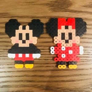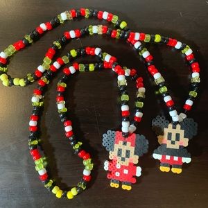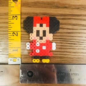 Minnie Mouse Perler Kandi is currently on a necklace, but can be keychain or bracelet. Mickey has been sold. Great Christmas ornament!