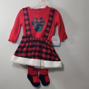 Minnie Mouse Red 3 Piece Jumper Dress Top Tights Girls Baby 0/3 Months NWT