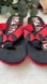 Adorable flip flops featuring Minnie Mouse. Red and black design with bow detail.