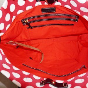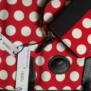 Designed for the Minnie Rocks the Dots celebration, this purse and wallet combination features Minnie's iconic red and white polka dots. This item was purchased and never used.