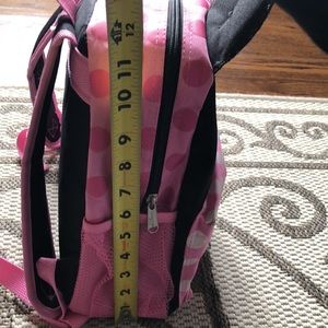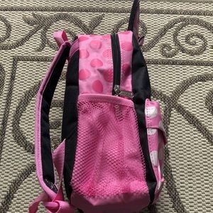 Disney Minnie Mouse pink with white polka dots backpack; has an outside pocket for your essentials;by Ruz 2015; still in good condition; has adjustable straps; lovely pink color!
