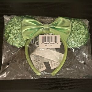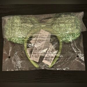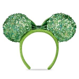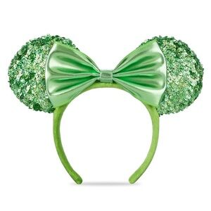 Like the darlin' Minnie Mouse, you'll find a lucky charm in this ear headband with shimmering kelly green sequins on a metallic green bow.