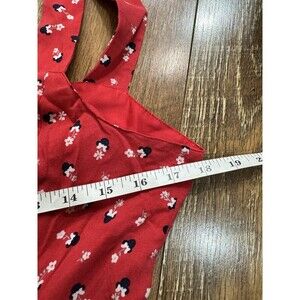 This Disney Couture Minnie Mouse dress is a vibrant red A-line midi dress, designed for women in size 6. The sleeveless style is perfect for warm weather, featuring a cute cutout back detail. Ideal for a Disney vacation or casual summer days, this dress is a playful and stylish choice for fans of Minnie Mouse.