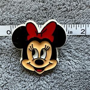 Minnie Mouse Vtg Pin Disney Acrylic Small Old Parks Black Red Bow Smile Monogram
