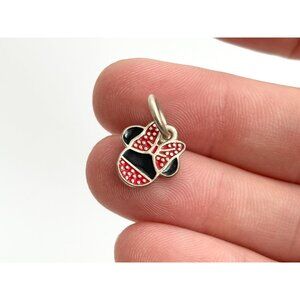 Lovely sterling silver red and black enameled Minnie Mouse shaped figural pendant. The pendant is tiny and marked with ALE and 925 on the posterior. Beautiful piece.