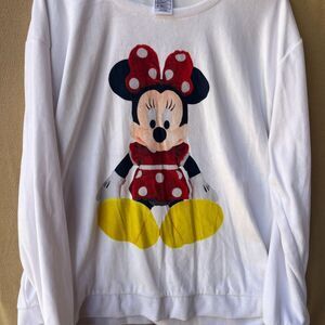 Minnie Mouse Womens XXL White Velour Sweatshirt Pullover Disney Parks Loungewear