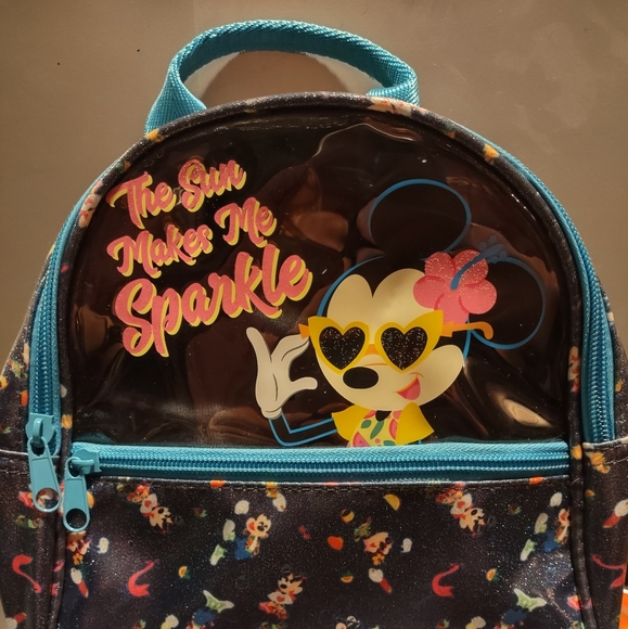 Small, two-pocket backpack. Like new condition. Fabric is wipeable and with it's sparkly shimmer, a great gift for that Minnie Mouse lover!