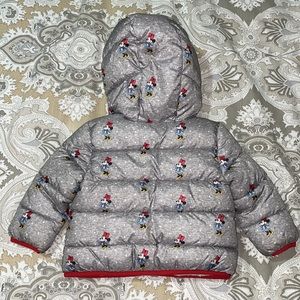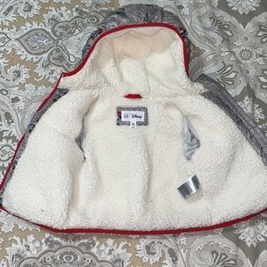 Price is final! The cutest grey Minnie Mouse puffer jacket with red trim! Sherpa lined. Very warm! In new condition! My daughter only wore it a few times. Full hood that is fully Sherpa lined as well. Pockets in front. Zip closure.