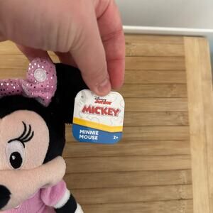 Soft Minnie doll, no hard pieces. Details are embroidered. NWT, Disney. Bow and shoes have shimmer detail. Approximately 10inches tall