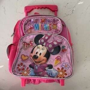 Minnie Mouse toddler rolling backpack suitcase and Minnie Mouse stuffed animal