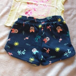 Minnie Mouse Short Sleeve Top and Shorts Set. Shorts are "dolphin" style with elastic waistband and blue tie that seems to be for looks. Top has Pink foil (shiny) design printed on it. Both are 12 month size. 100% Cotton for both. Washing directions printed inside clothing. Heart shaped kid's sunglasses. Minnie Tsum Tsum. New with Tags. No rips, tears, stains or defects. Smoke free/Dog friendly home.