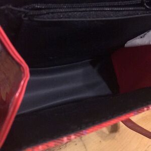 Super cute Minnie Mouse purse/ crossbody purse. Shoulder strap is removable. Plaid front black on back. Red on sides.