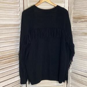 Minnie Rose 100% Cashmere Black Fringe Trim Open Cardigan XL NWT