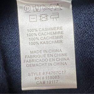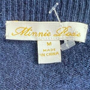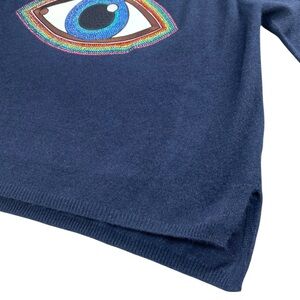 Minnie Rose 100% Cashmere Dark Blue Sweater with Evil Eye Gemstone Design Size M